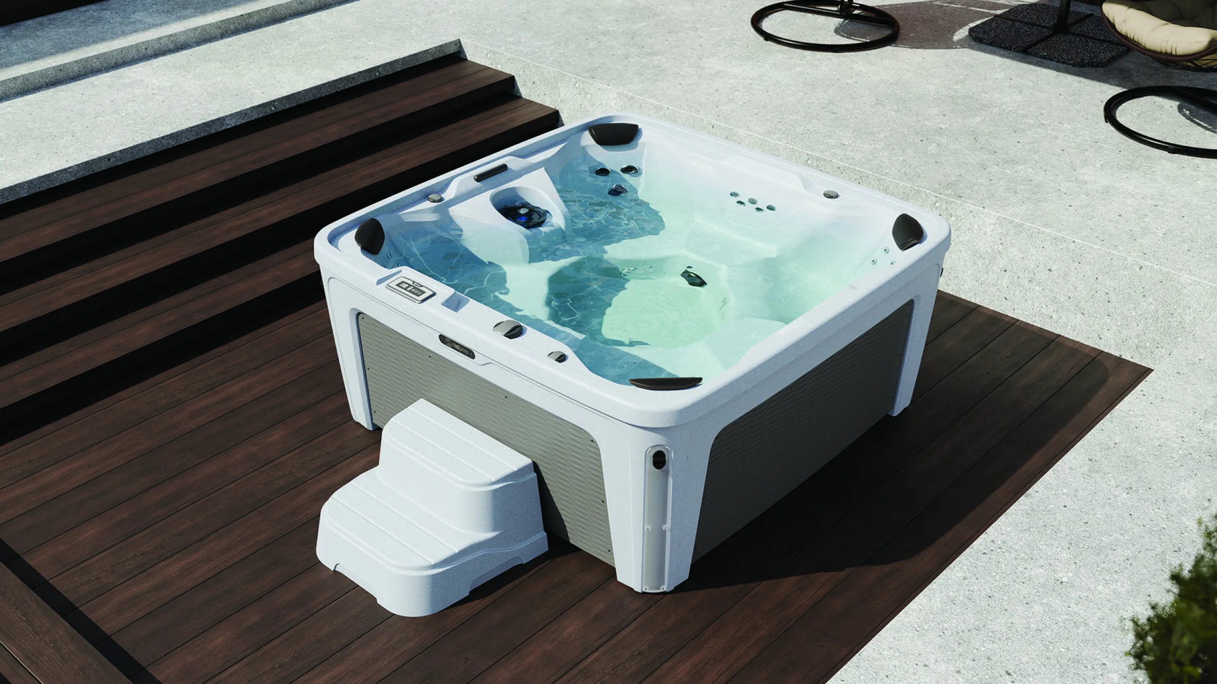 The built-in Hot Tub Sanitizer with minerals and up to 75% Less Chlorine